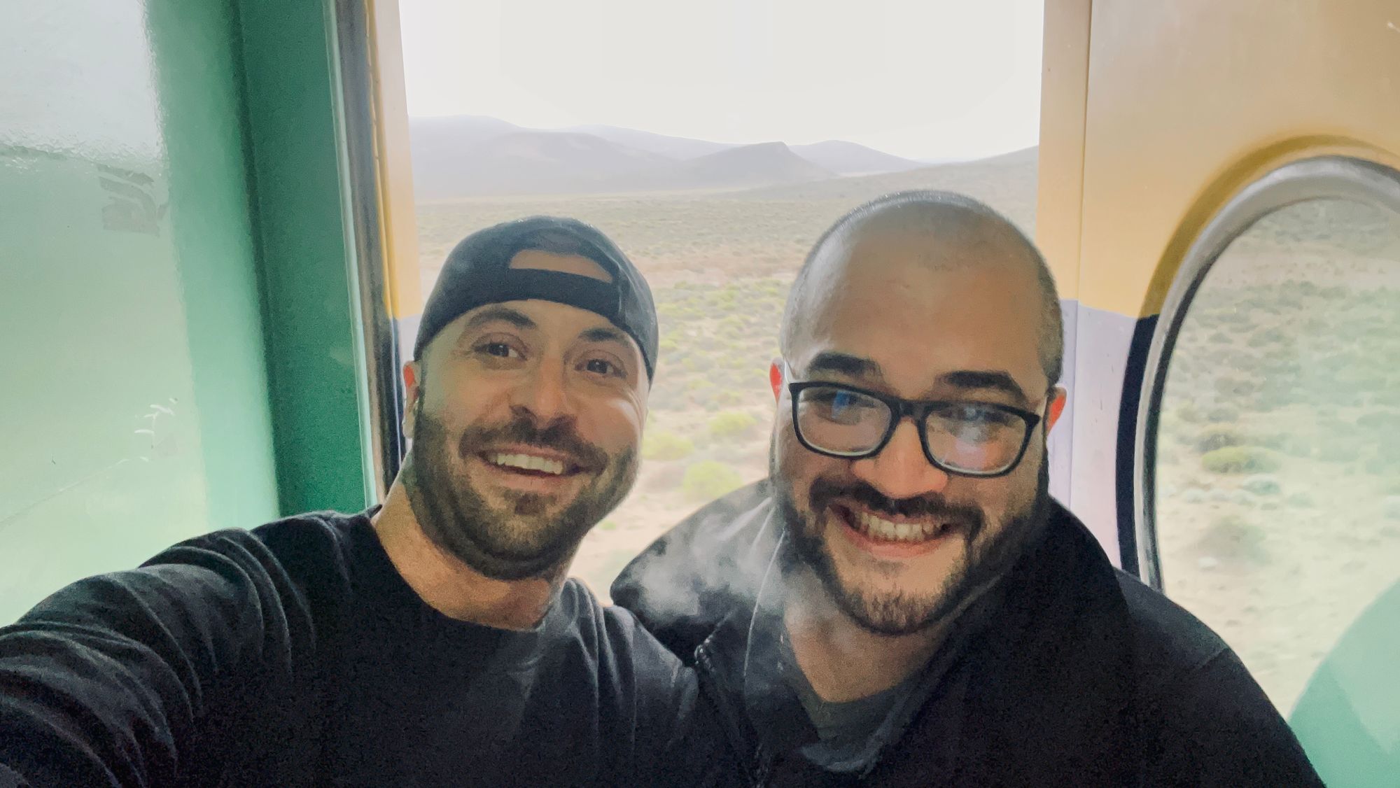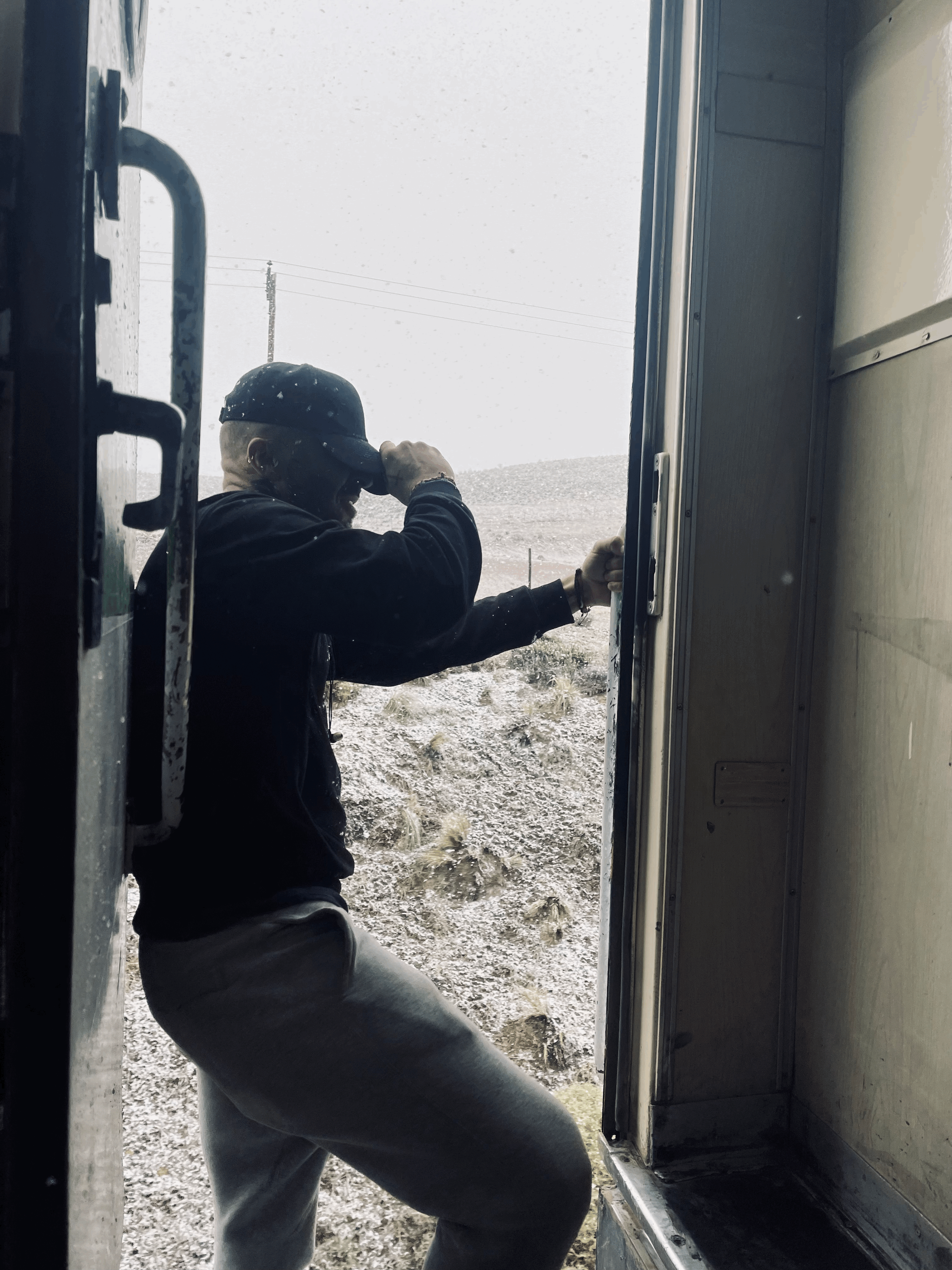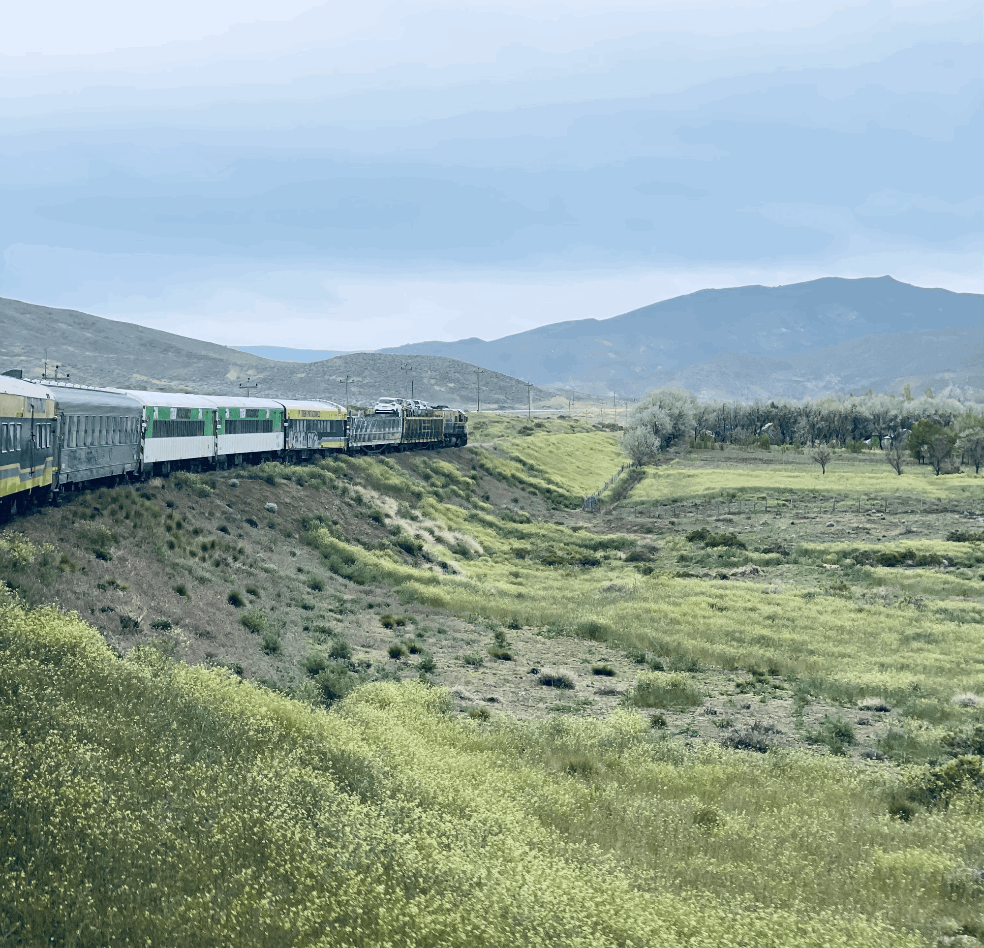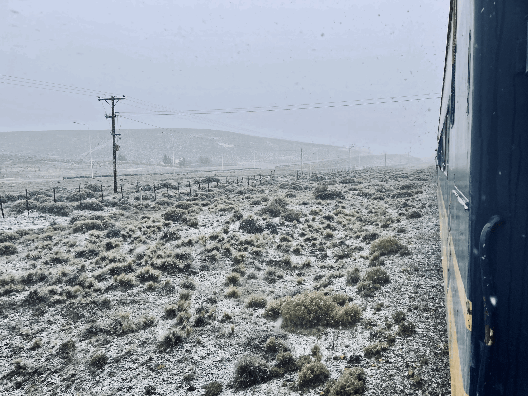 Tren Patagonico - Viedma, Argentina to San Carlos de Bariloche, Argentina, 10/28-10/29 (and me hanging out the train with one hand to take this pic. Don't worry, I'm ok Ma!)